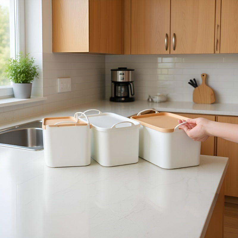 멀티 토트 수납함 솔리드 플라스틱 수납 정리함 덮개 달린 옷과 잡동사니 수납함